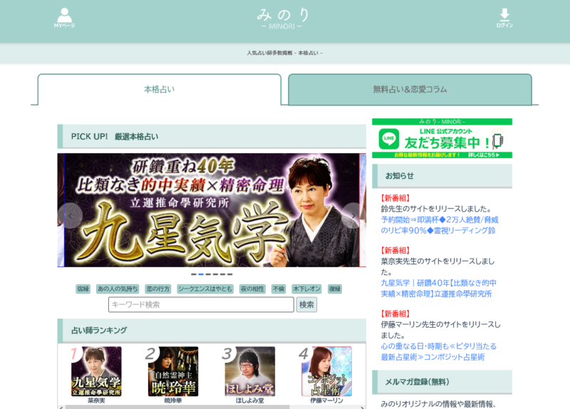 こちらのサイトは、「みのり」は占いアプリの紹介サイトで